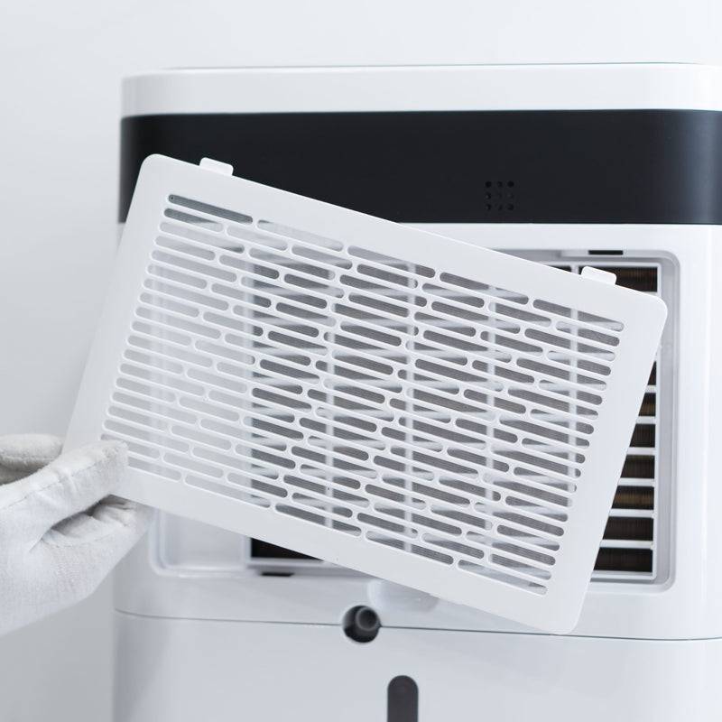 Un deshumidificador tiene un compresor interno que extrae el aire del ambiente para luego condensarlo y transformarlo en agua que decanta en el receptáculo.