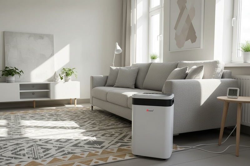 Un deshumidificador doméstico elimina el exceso de humedad del aire para mantener un ambiente interior más seco, saludable y confortable.